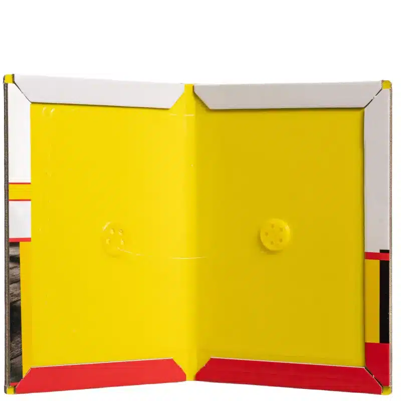- Príprava: Vyberte pascu z obalu a rozložte ju ako knihu. Nedotýkajte sa lepiacej plochy.