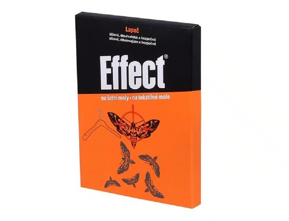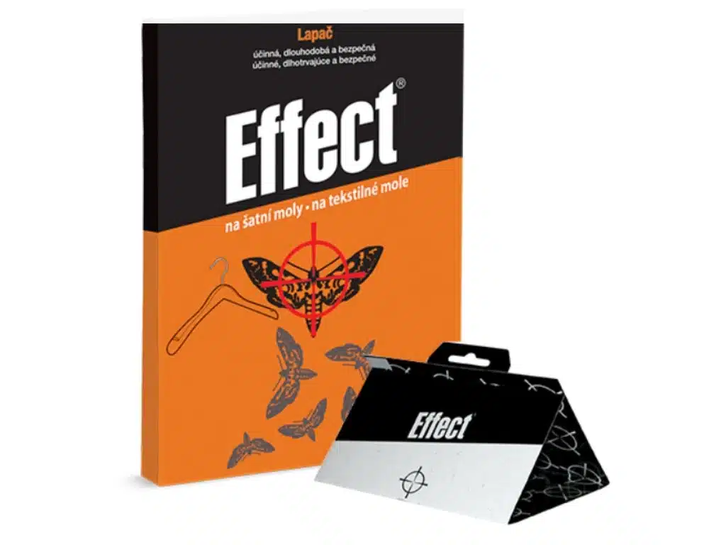 EFFECT® Lapač na šatníkové mole využíva feromónovú návnadu, ktorá láka samčekov molí na lepiacu plochu, čím prerušuje ich rozmnožovací cyklus.