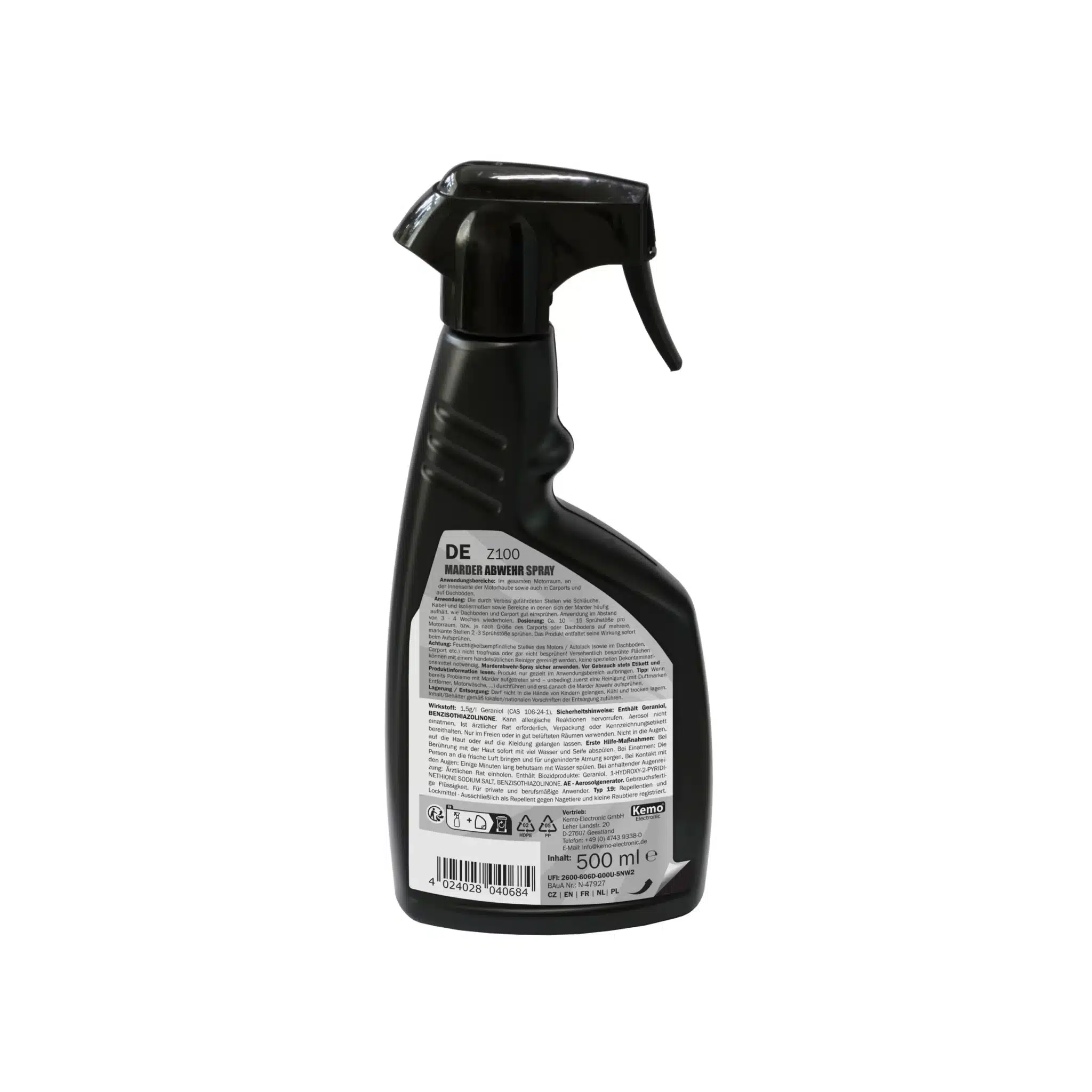 Kombinujte silu spreja s technológiou. KEMO Z100 je vynikajúcim doplnkom k ultrazvukovým plašičom. Kým plašič pôsobí na sluch, sprej útočí na čuch kuny. Táto kombinácia vytvorí pre škodcu natoľko nepriateľské prostredie, že vaše auto alebo dom zaručene obíde veľkým oblúkom.