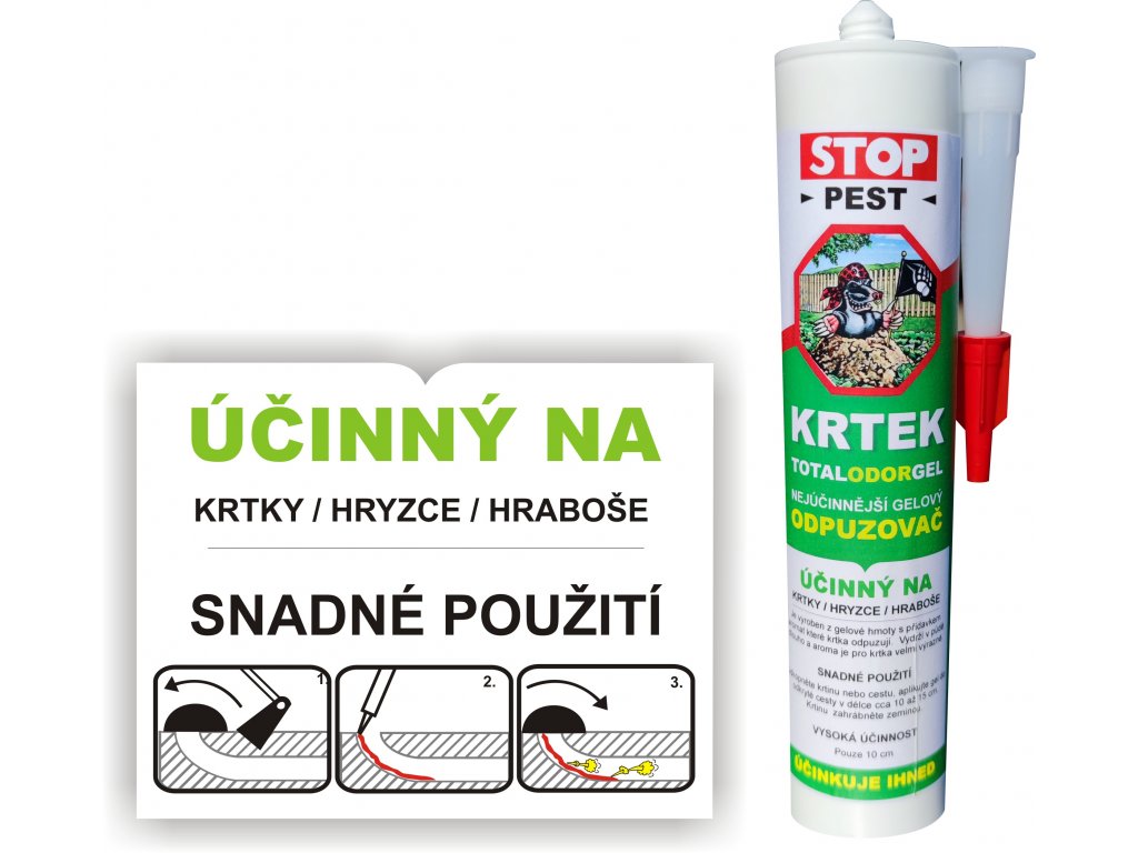 Odpudzovač krtkov Total Odor Gél je mimoriadne účinný a trvanlivý. V tube zostáva stále čerstvý, nezvetráva a je pripravený ihneď na použitie. Obsahuje vybrané pachové zložky ktoré krtko nemá rád a opustí takto ochránený priestor.