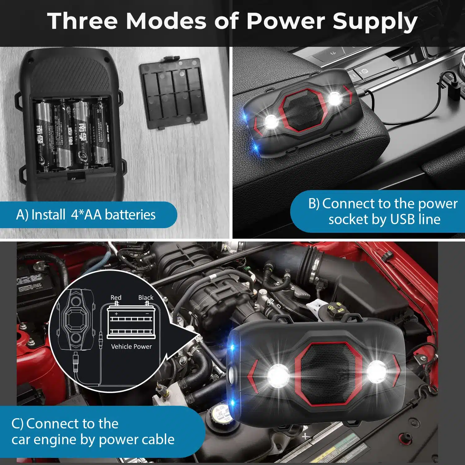 - Ponúka následne tri možnosti napájania: 230 V, 12 V autobatéria alebo AA batérie.