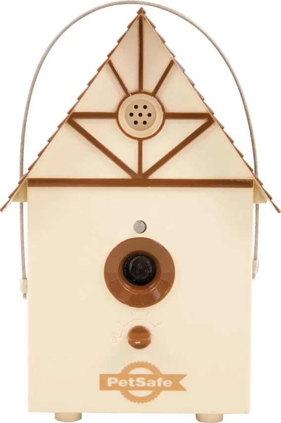 Budka ponúka štyri nastaviteľné režimy dosahu: do 4 m, 9 m, 15 m a testovací režim. To umožňuje prispôsobiť pôsobenie podľa veľkosti záhrady alebo konkrétnej situácie. Zariadenie je vodotesné a vhodné na celoročné vonkajšie použitie – môžete ho zavesiť na strom, plot alebo položiť na stôl.