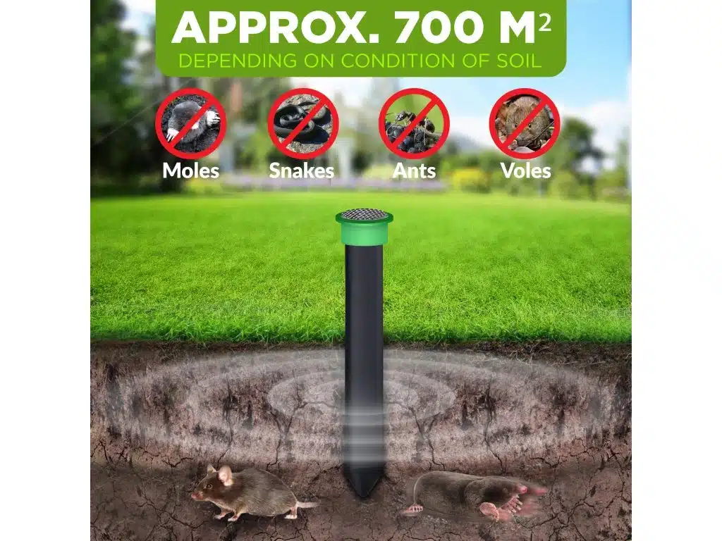 Elektronický plašič do zeme na ochranu záhrady pred krtkami, hrabošmi, potkanmi a mravcami bez chémie.