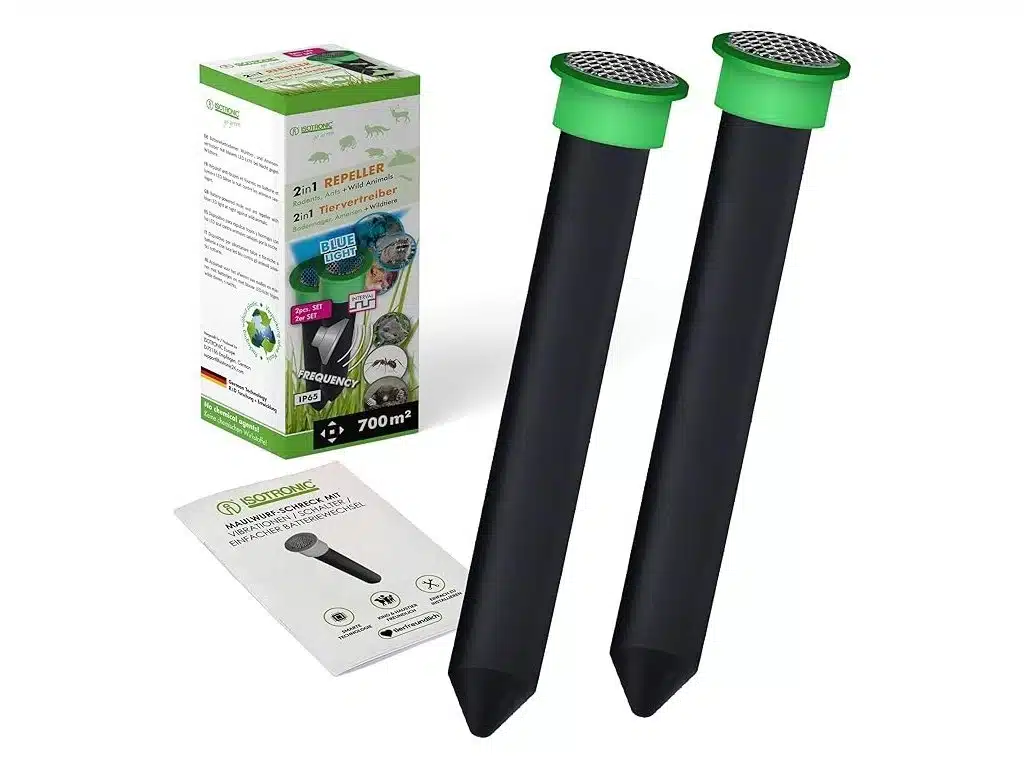 Elektronický plašič ISOTRONIC® je určený na ochranu vonkajších plôch pred krtkami, potkanmi, hrabošmi a inými pôdnymi škodcami. Funguje na princípe elektromagnetických vibrácií, ktoré sa šíria pôdou a pôsobia rušivo na živočíchy citlivé na otrasy.
