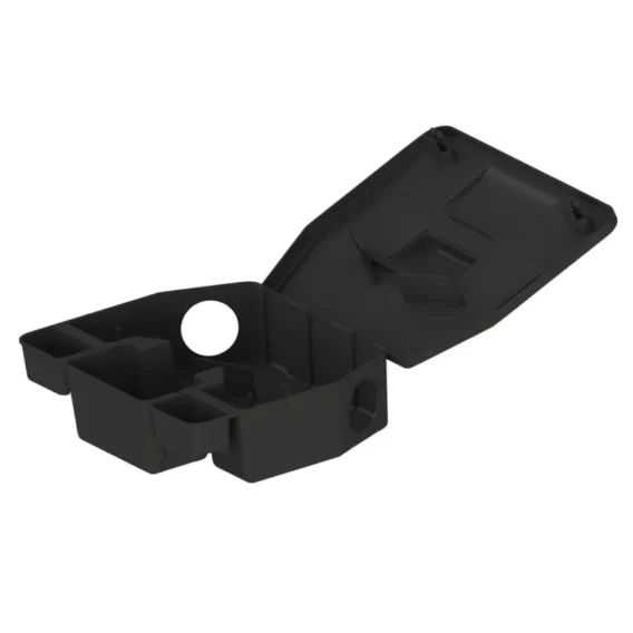 Vyrobená je z kvalitného polypropylénu (PP), ktorý sa vyznačuje vysokou pevnosťou, odolnosťou a dlhodobou životnosťou. Stanica je uzamykateľná pomocou kľúčika a disponuje priehľadným krytom, ktorý umožňuje vizuálnu kontrolu spotreby návnady bez otvárania.