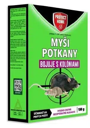 - Cieľové škodce: Potkan hnedý (Rattus norvegicus), myš domová (Mus musculus)