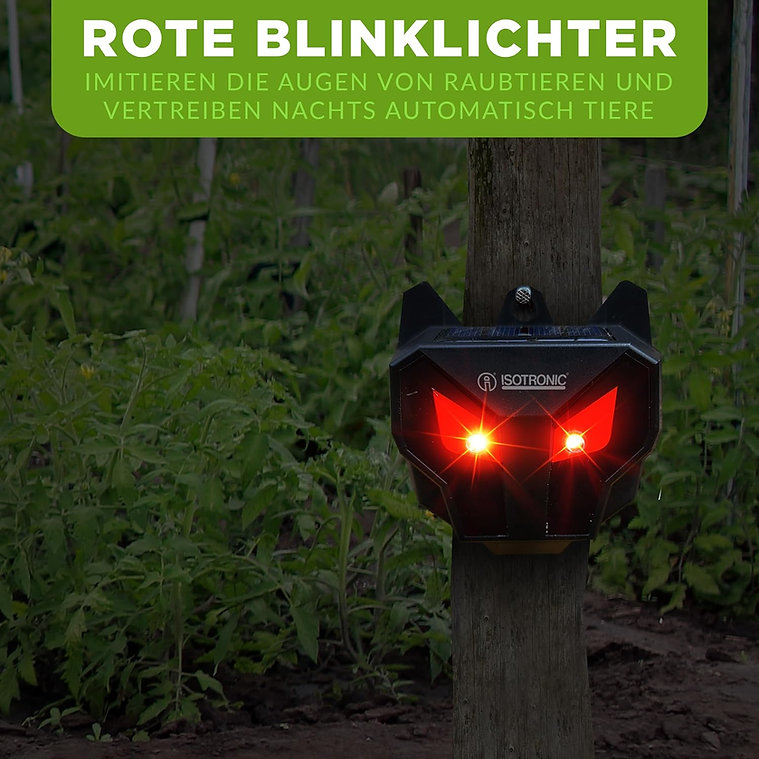Solárny odpudzovač divej zveri s červeným svetlom